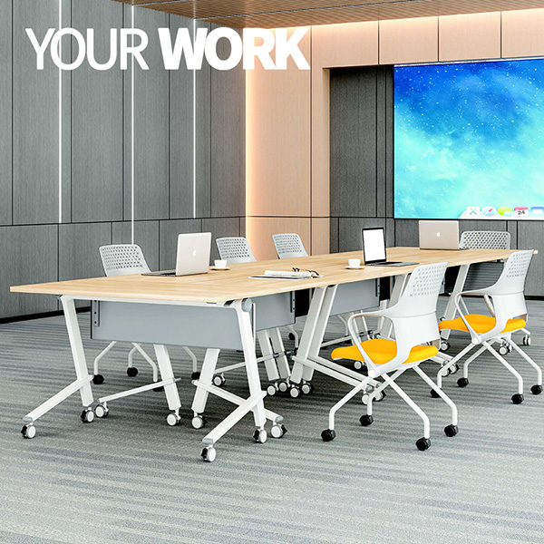 Por mais de 15 anos como fabricante de móveis de escritório,Yourwork FurnitureDesenvolva este excelenteTabela de treinamento dobrável, levando muitos detalhes em consideração, como a placa ecológica de segurança e beleza, equipada com rodízios móveis suaves para facilitar a realocação, design atemporal, fácil de armazenar para economizar espaço, fácil de desdobrar etc.